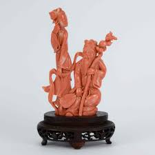 Peinture asiatique , statue en corail, ivoire ou jade ,